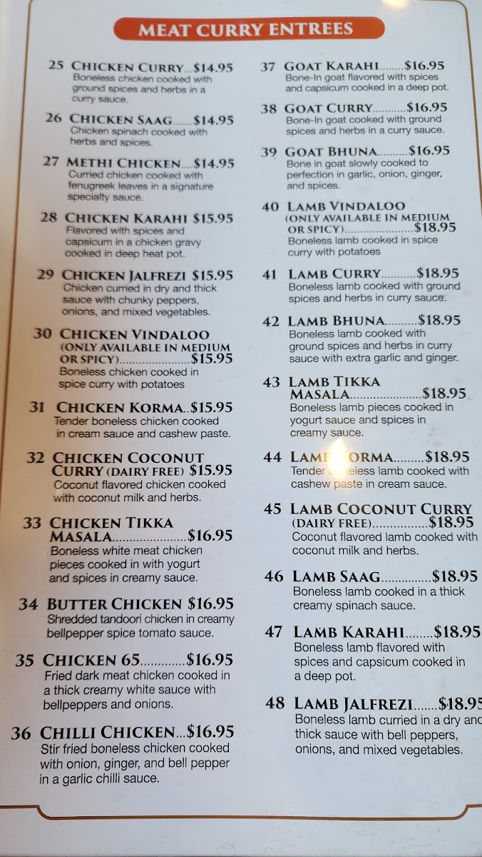MENU - Meat Curry Entrees