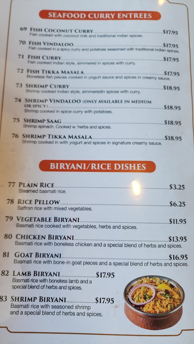 MENU - Seafood Curry Entrees